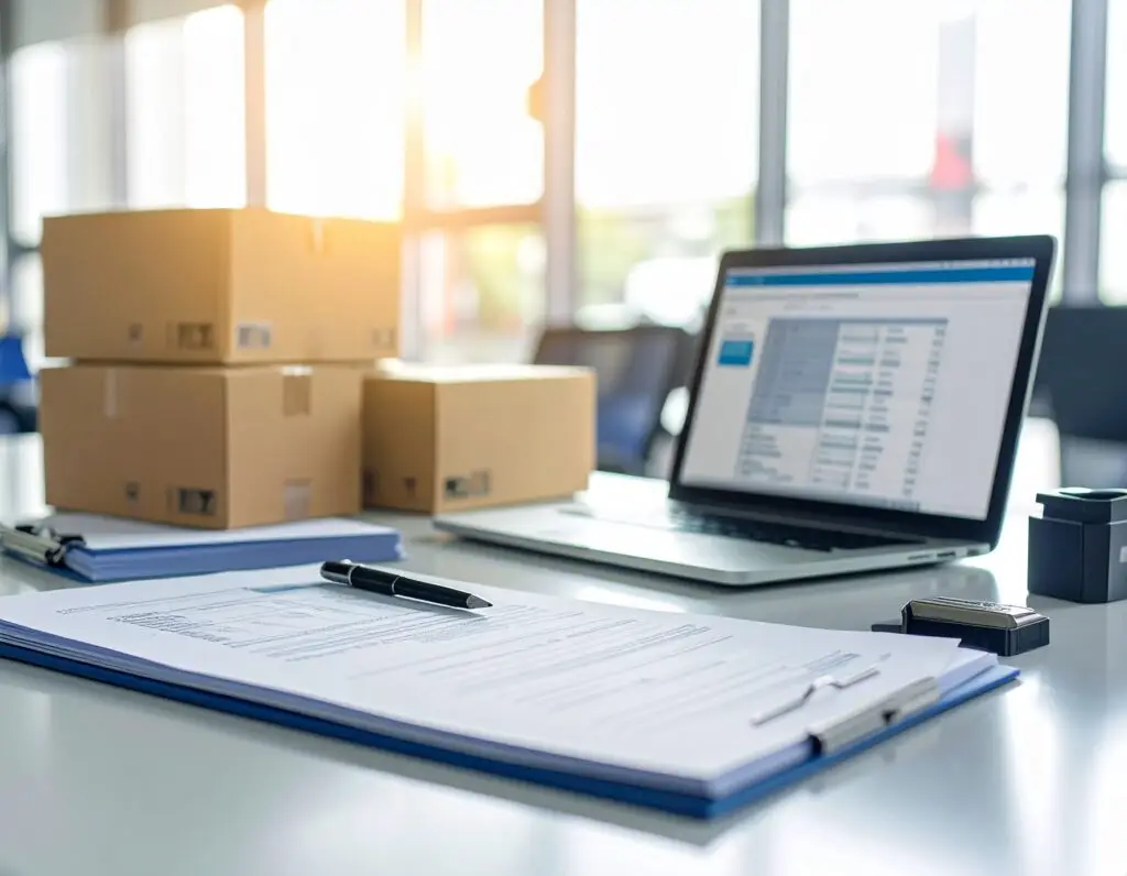Handelsrechnung, Packliste und Transportpapiere (z. B. Speditionsauftrag oder Trackingnummer).